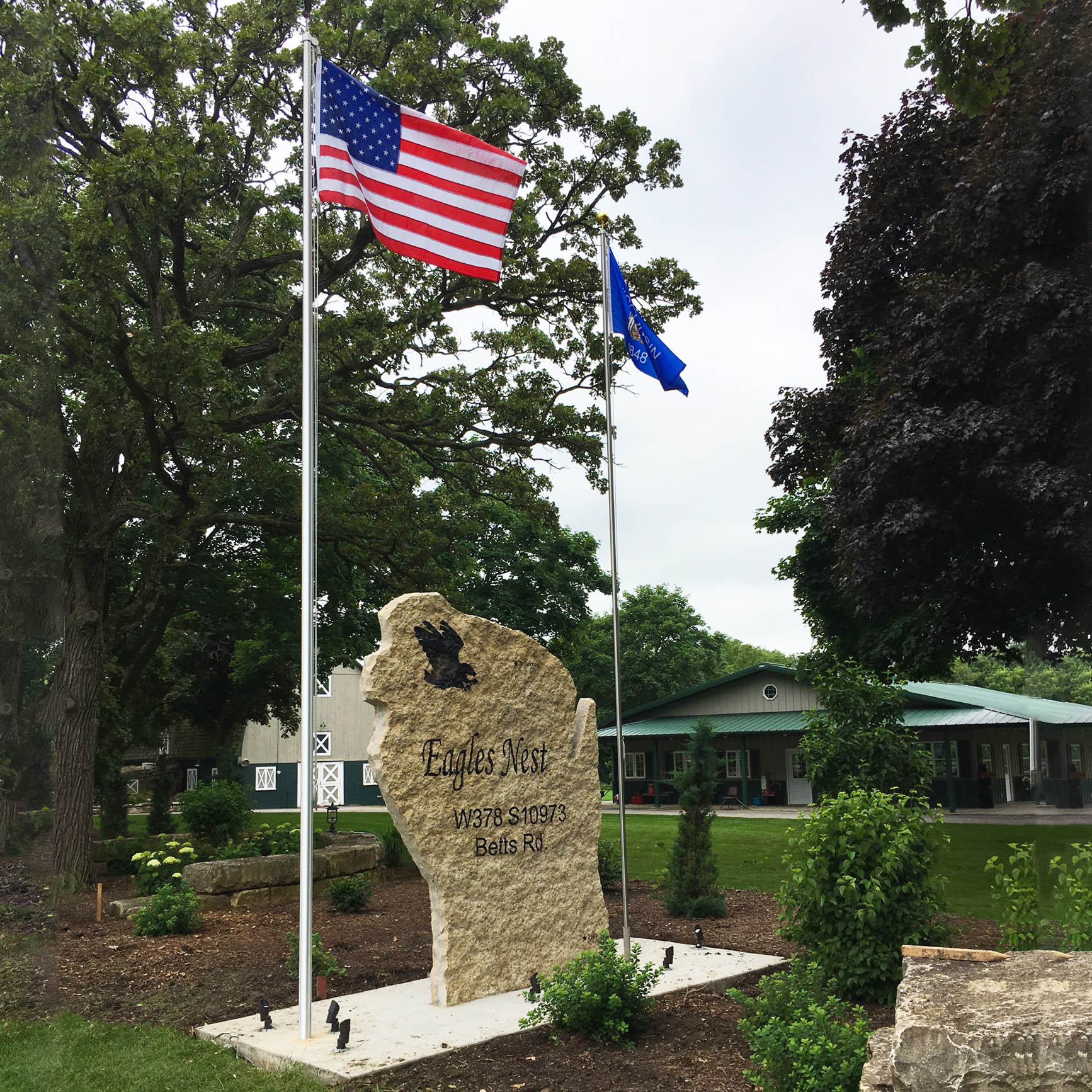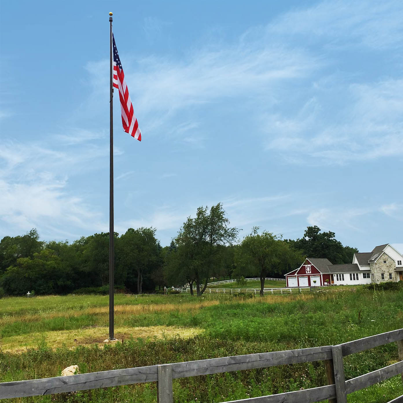 25' satin external halyard flagpole in Eagle, WI. Flying a 3x5' U.S. nylon flag.