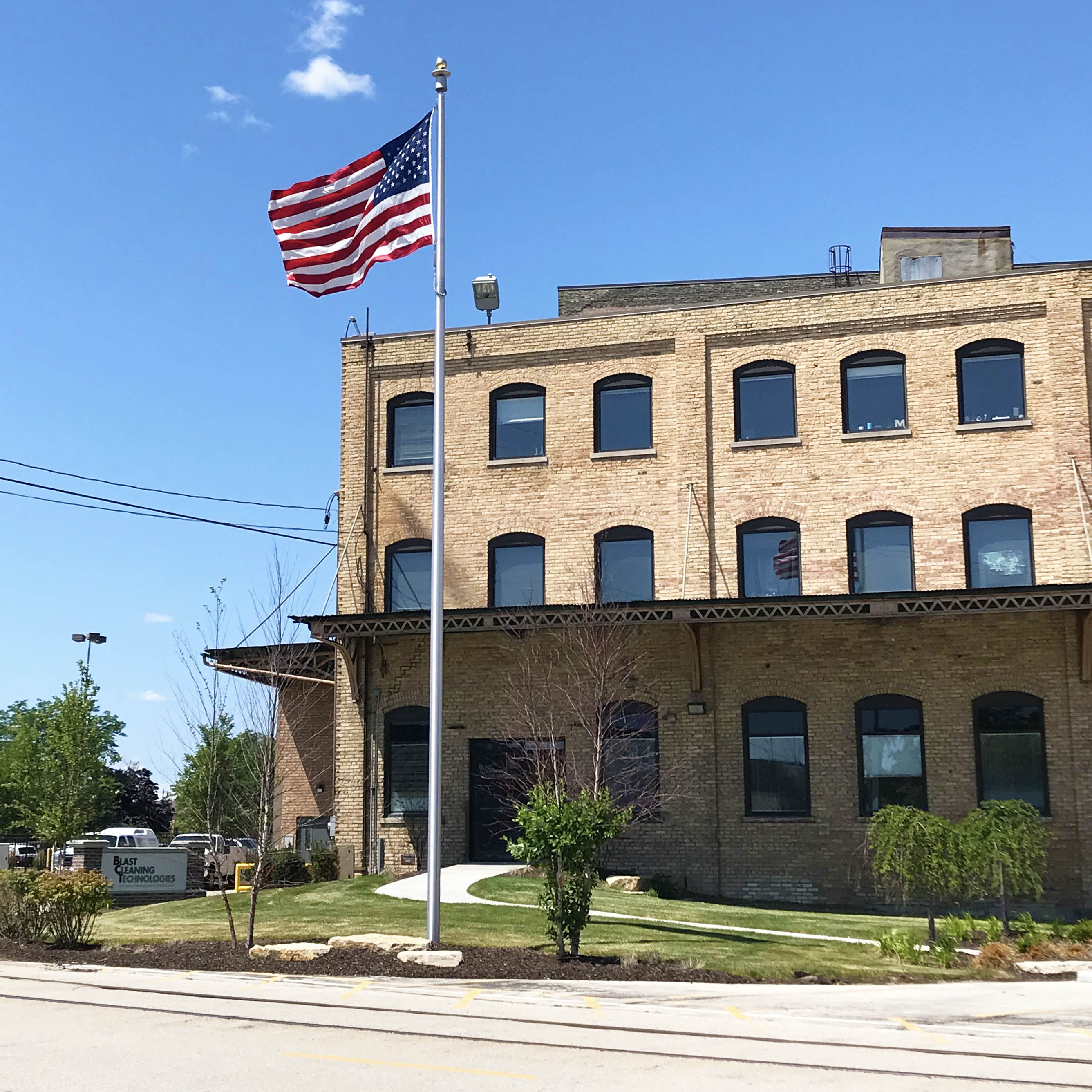 35' satin internal halyard flagpole in Milwaukee, WI. Flying a 6x10' U.S. nylon flag.